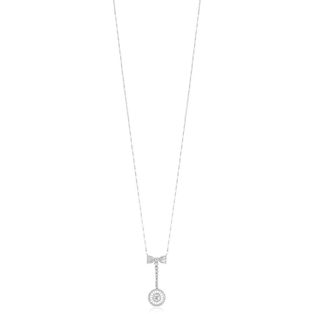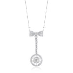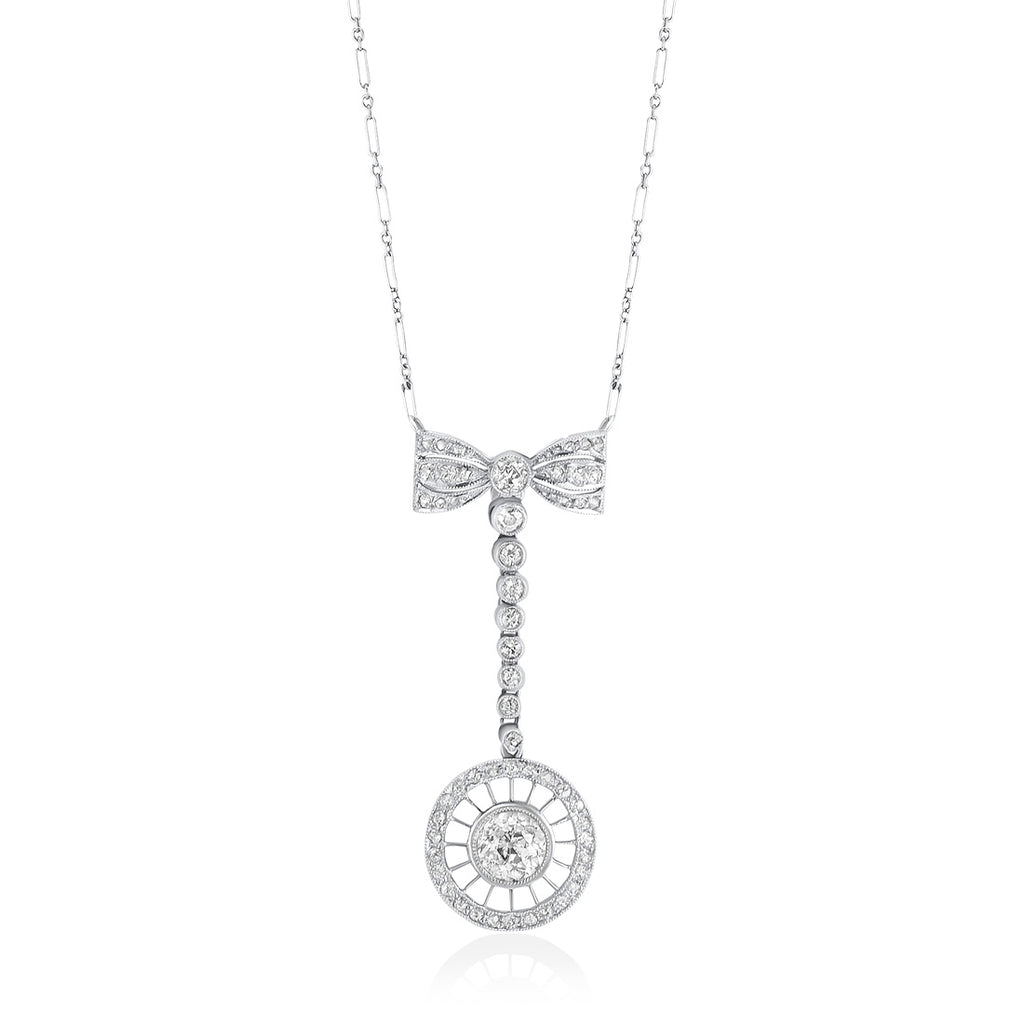 Antique Edwardian Platinum Milgrain Edge Rub Set Old Cut Diamond Bow Drop Pendant and Chain