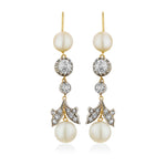 Antique Victorian Gold and Silver Natural Pearl and Rose Cut Diamond Drop Earrings with a Hook Fitting