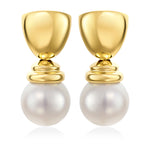 18ct Yellow Gold Akoya Cultured Pearl Drop Earrings with a Post and Scroll Fitting