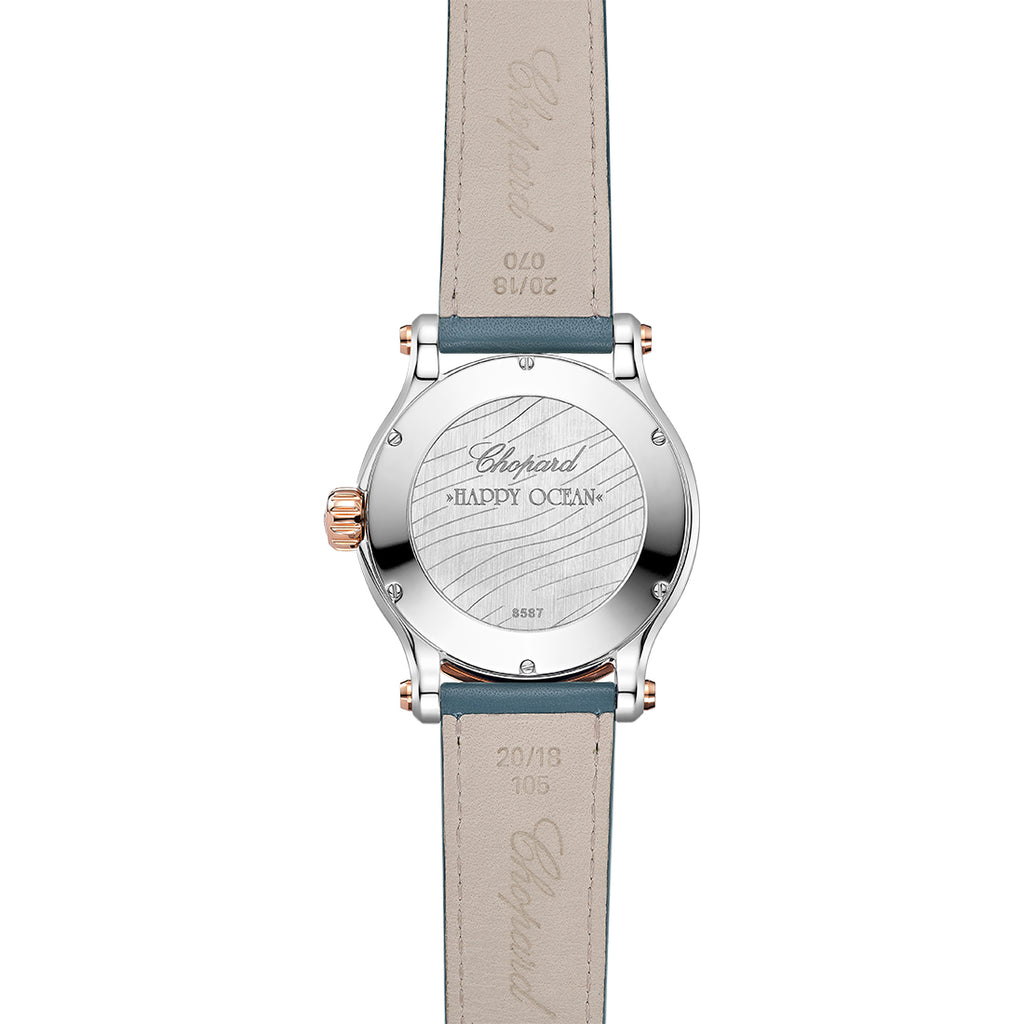 Chopard Happy Sport Happy Ocean 18ct Rose Gold and Steel 40mm Blue Patterned Baton and Dot Dial Watch with a...