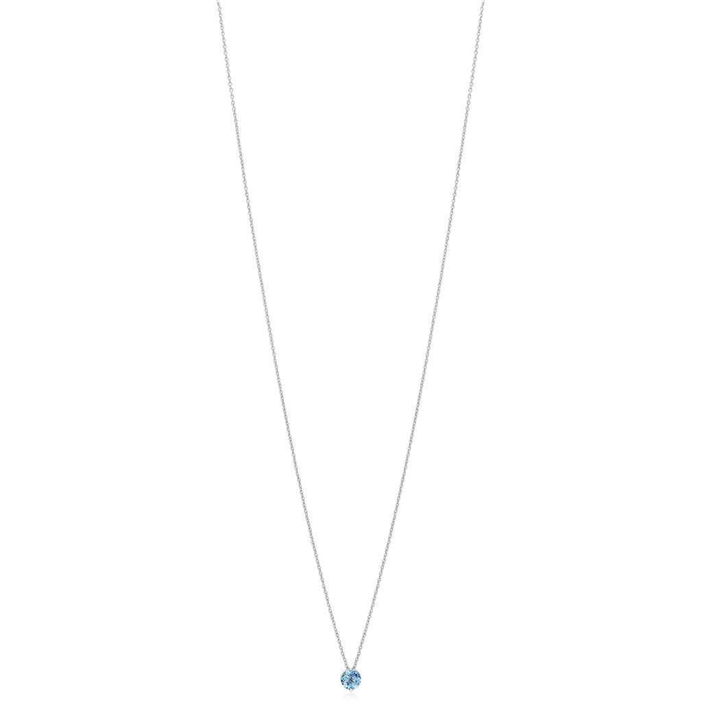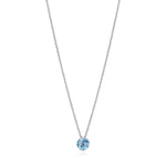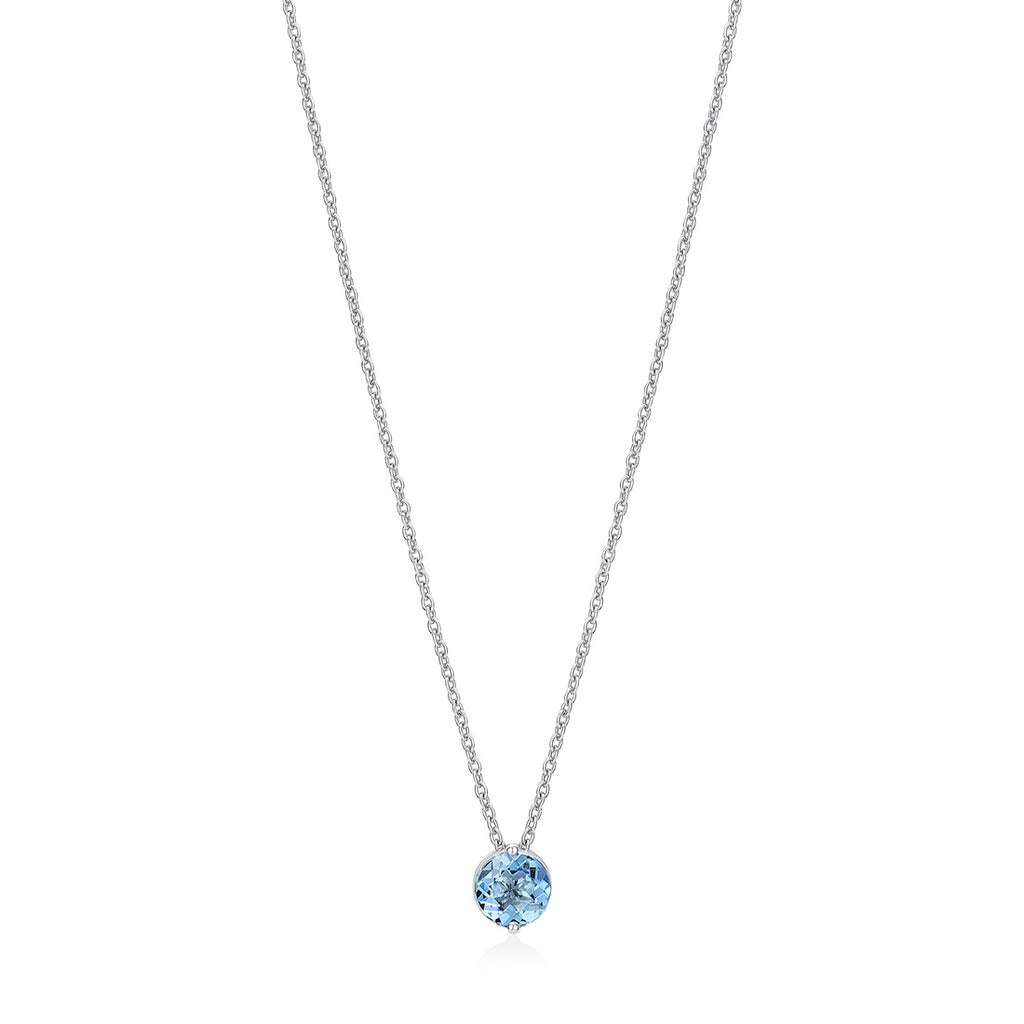 18ct White Gold Two Claw Set Round Cut Aquamarine Pendant and Chain