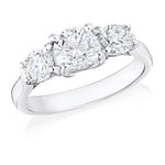 Platinum Three Stone Four Claw Set Round Brilliant Cut Diamond Ring with Tapered Shoulders