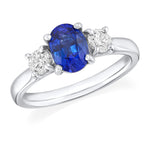 Platinum Four Claw Set Oval Cut Sapphire and Round Brilliant Cut Diamond Ring with Plain Shoulders