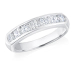 18ct White Gold Channel Set Round Brilliant Cut and Square Cut Diamond Half Eternity Ring