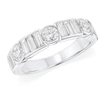 Platinum Rub Set Baguette Cut and Round Brilliant Cut Diamond Half Eternity Ring