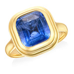 18ct Yellow Gold Rub Set Cushion Cut Sapphire Ring with Plain Shoulders
