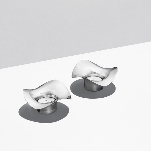 • Georg Jensen Cobra Stainless Steel Tealight Holders (Pair)Georg Jensen Cobra Stainless Steel Tealight Holders (Pair)