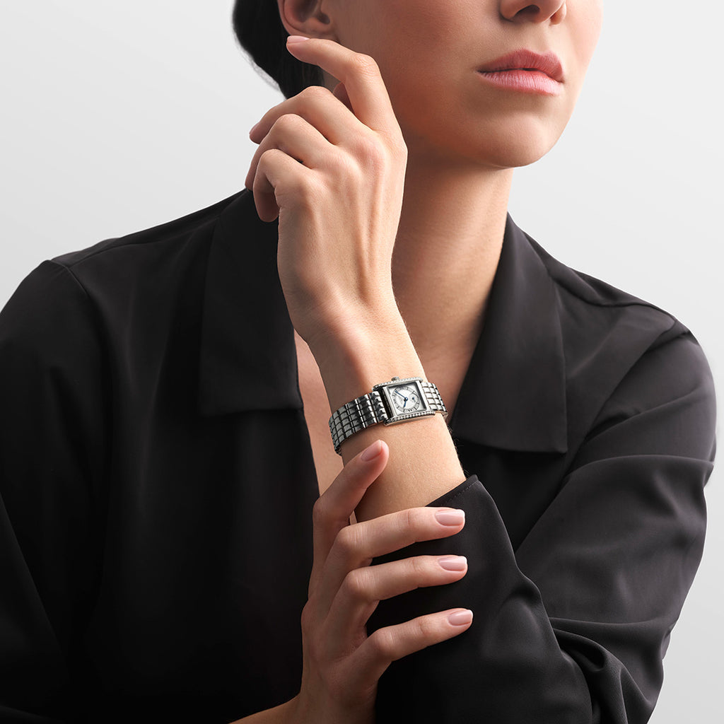 Longines Mini DolceVita Steel 29mm x 21.5mm Silver Baton and Roman Dial Watch with a Steel Diamond Set Bezel on...