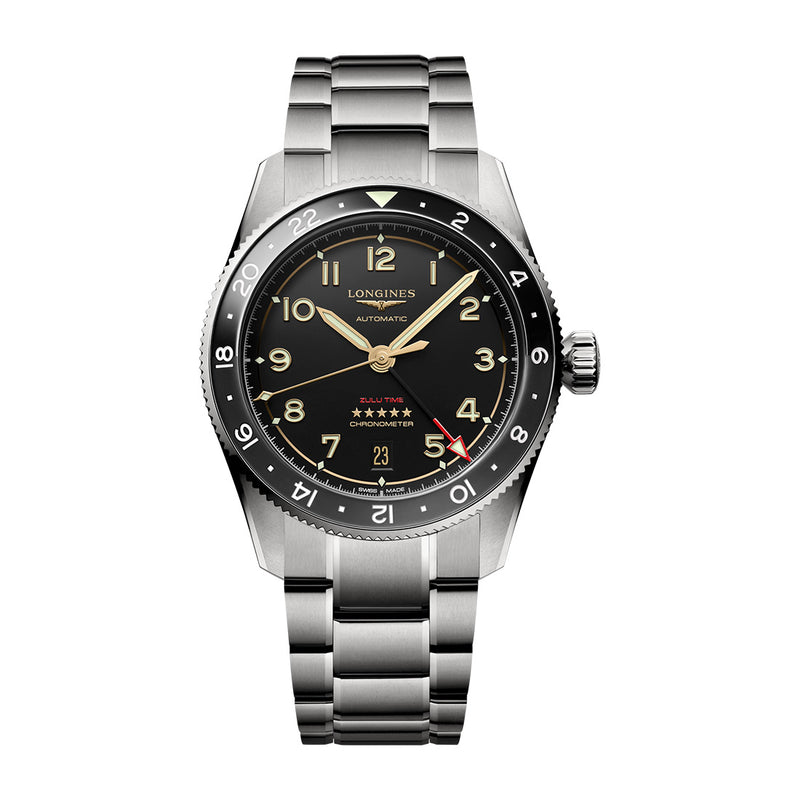 Longines Spirit Zulu Time Titanium 39mm Anthracite Arabic Dial Watch with a Black Ceramic Rotating Bezel on a Titanium Bracelet...