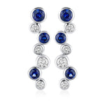 18ct White Gold Rub Set Round Cut Sapphire and Round Brilliant Cut Diamond Drop Earrings with a Post and Scroll...