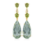 18ct Yellow Gold Five Claw Set Pear Shaped Green Amethyst and Pear Shaped Peridot Drop Earrings with a Post and...