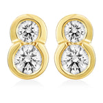 18ct Yellow Gold Rub Set Round Brilliant Cut Diamond Stud Earrings with a Post and Scroll Fitting
