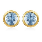 18ct Yellow Gold Rub Set Round Cut Aquamarine Stud Earrings with a Post and Scroll Fitting