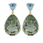 18ct Yellow Gold Three Claw Set Pear Shaped Green Amethyst and Pear Shaped Blue Topaz Drop Earrings with a Post...