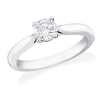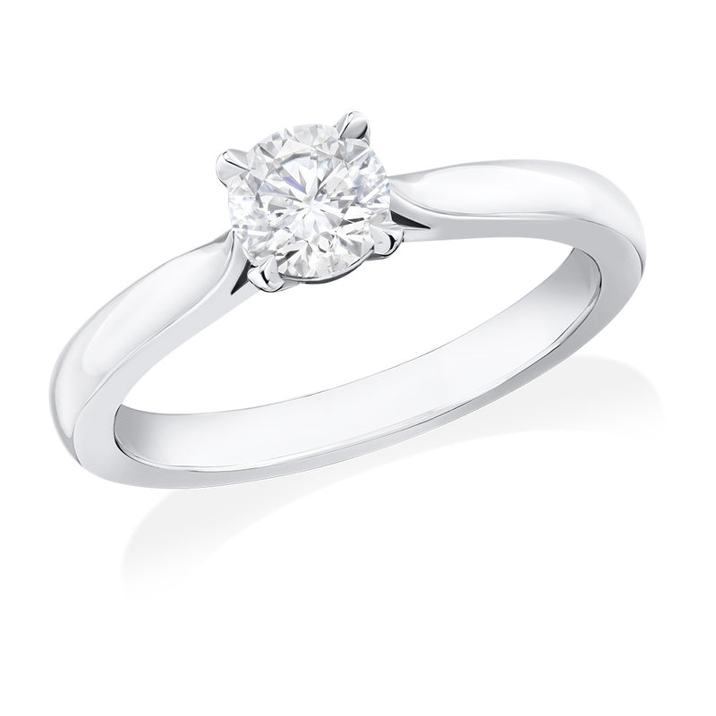 Mallory Victoria Platinum Solitaire Four Claw Set Round Brilliant Cut Diamond Ring with Tapered Shoulders