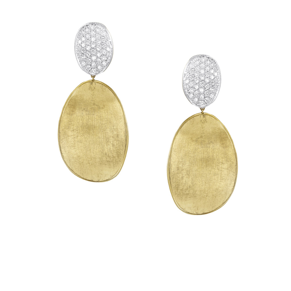 Marco Bicego Lunaria 18ct White and Yellow Gold Diamond Drop Earrings with a Post and Scroll Fitting