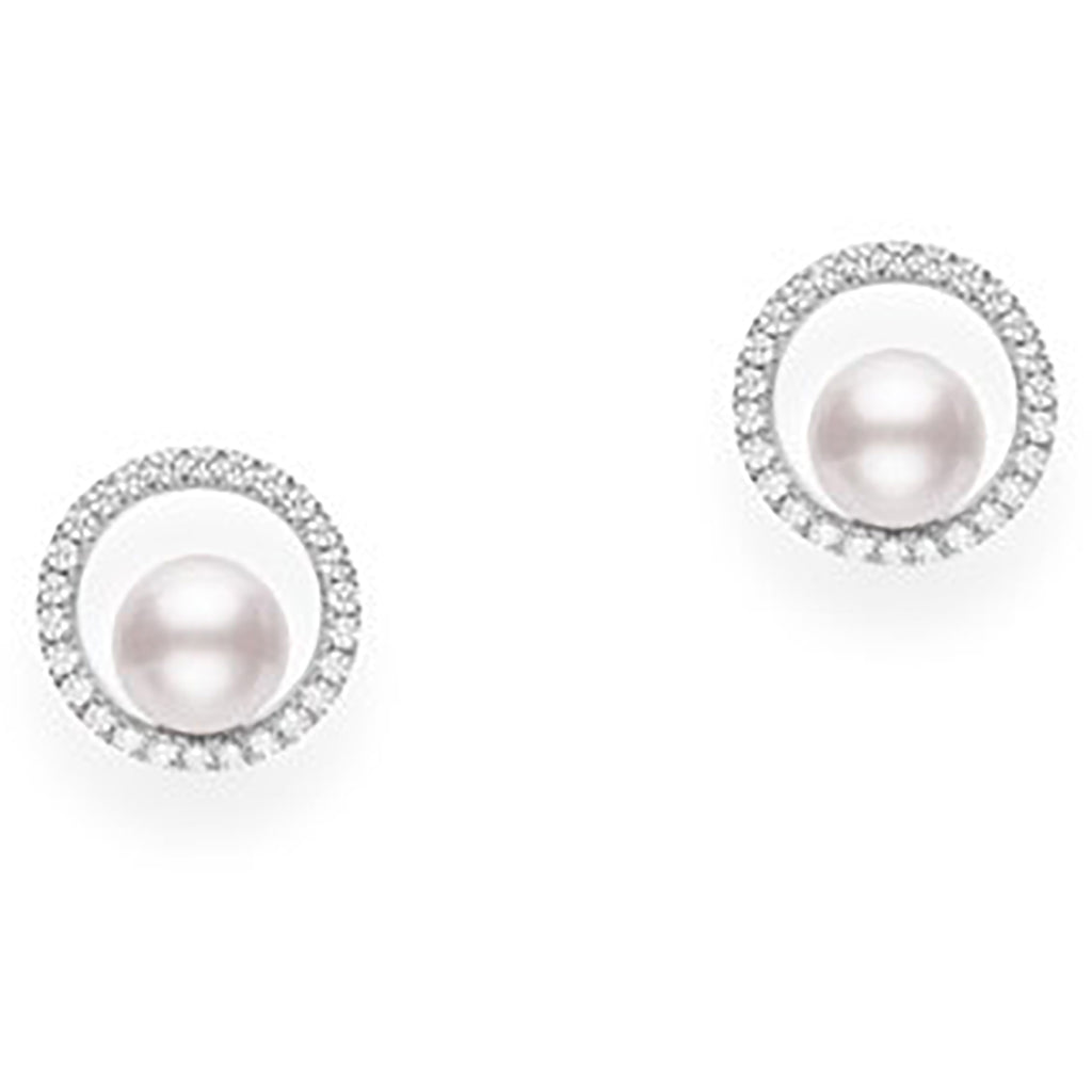 Mikimoto Circles 18ct White Gold Akoya Cultured Pearl and Diamond Halo Cluster Stud Earrings with a Post and Scroll Fitting...