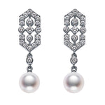 Mikimoto Art Deco 18ct White Gold Akoya Cultured Pearl and Diamond Drop Earrings with a Post and Hinge Fitting