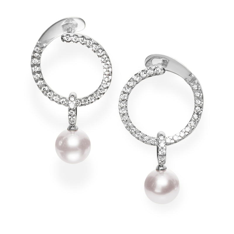Mikimoto Circles 18ct White Gold Akoya Cultured Pearl and Diamond Drop Earrings with a Post and Hinge Fitting