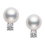 Mikimoto Classic 18ct White Gold Akoya Cultured Pearl and Diamond Stud Earrings with a Post and Scroll Fitting
