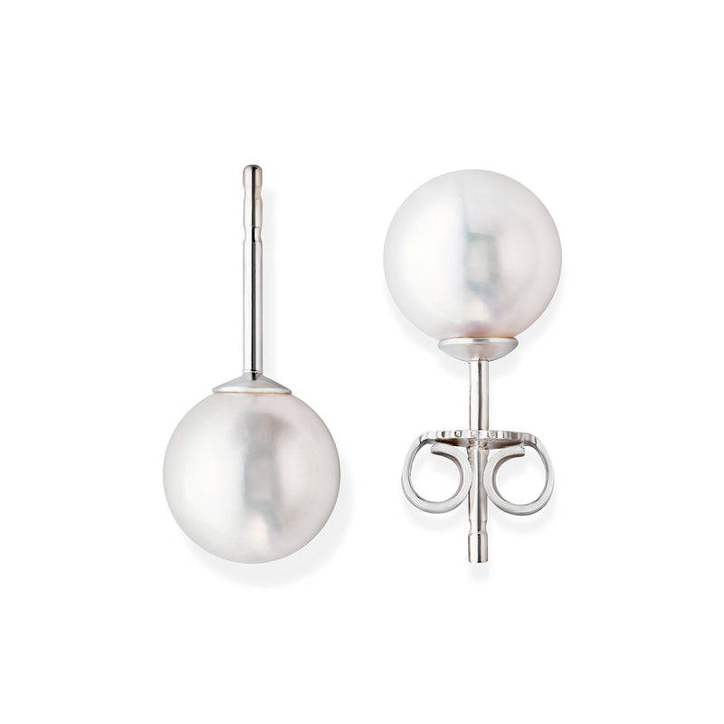 Mikimoto Classic 18ct White Gold Akoya Cultured Pearl Stud Earrings with a Post and Scroll Fitting
