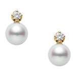 Mikimoto Classic 18ct Yellow Gold Akoya Cultured Pearl and Diamond Stud Earrings with a Post and Scroll Fitting