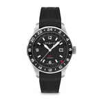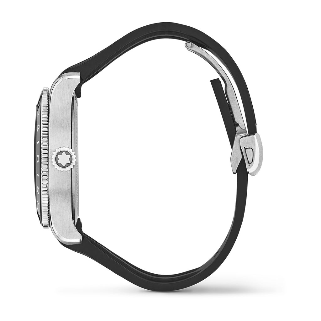 Montblanc 1858 GMT Steel 42mm Black Sunray Arabic and Baton Dial with a Black Aluminum Bezel Watch on a Black...