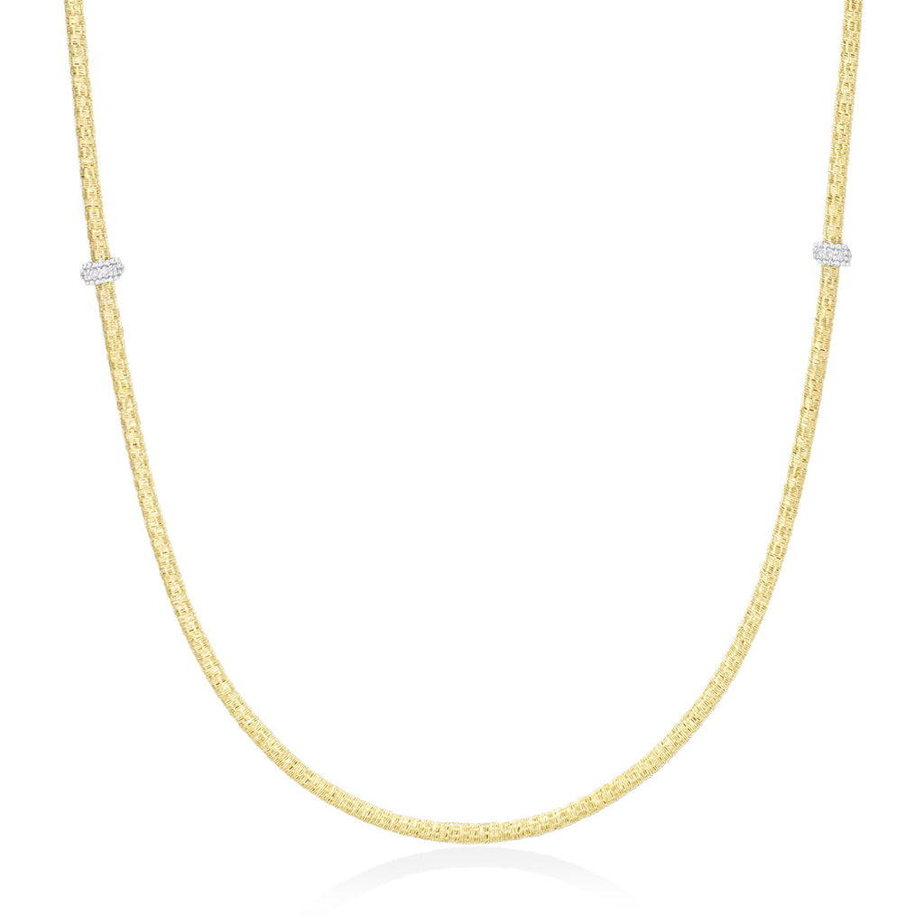 18ct Yellow and White Gold Milgrain Edge Grain Set Round Brilliant Cut Diamond Necklace