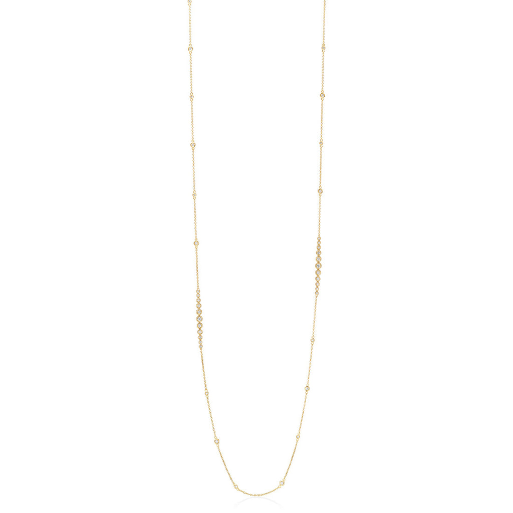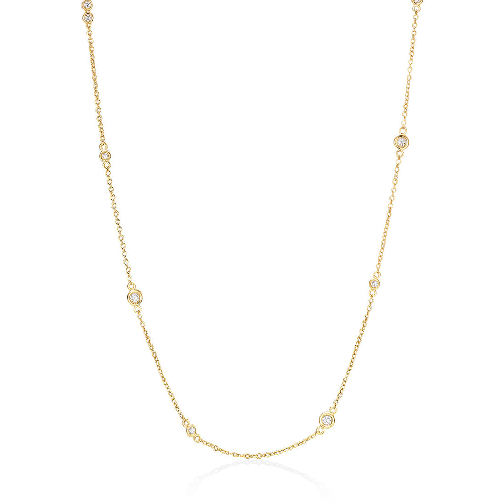 18ct Yellow Gold Rub Set Round Brilliant Cut Diamond Necklace