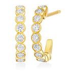 18ct Yellow Gold Polished Milgrain Edge Cup Set Round Brilliant Cut Diamond Half Hoop Earrings with a Post and Scroll...