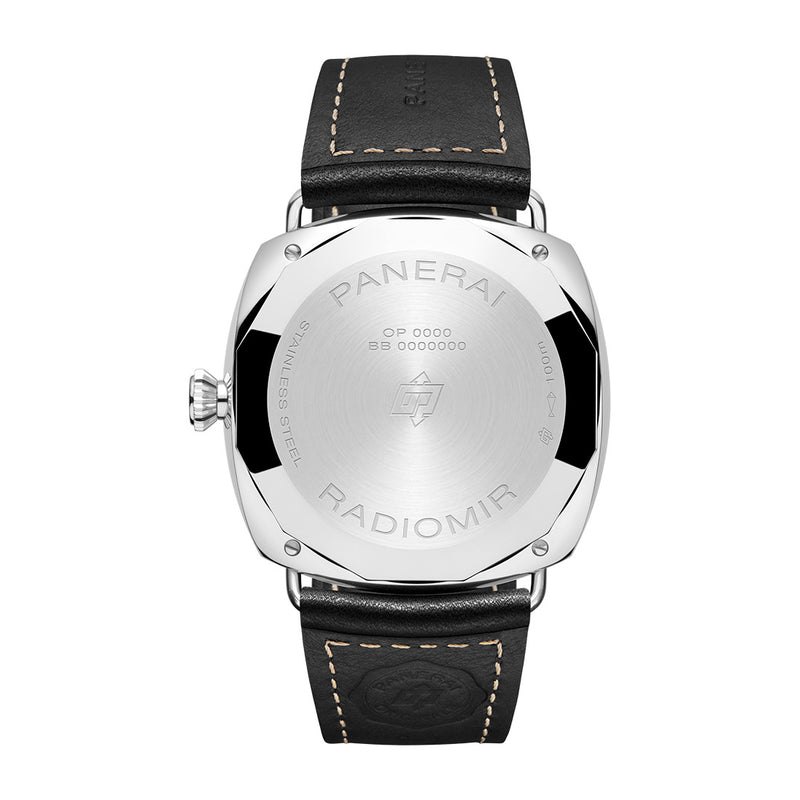 Panerai Radiomir Officine Steel 45mm Black Arabic and Baton Dial Watch with a Steel Polished Bezel on a Black Calfskin...