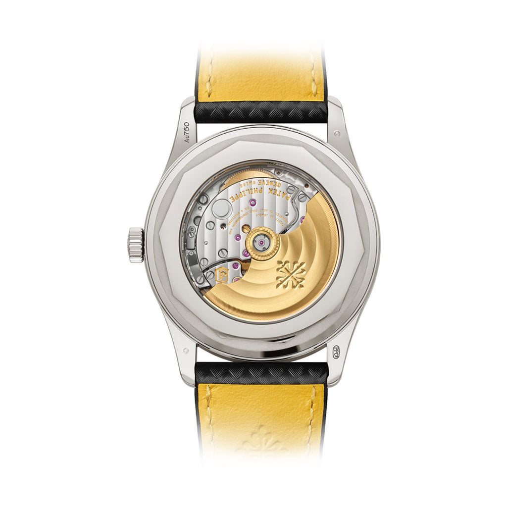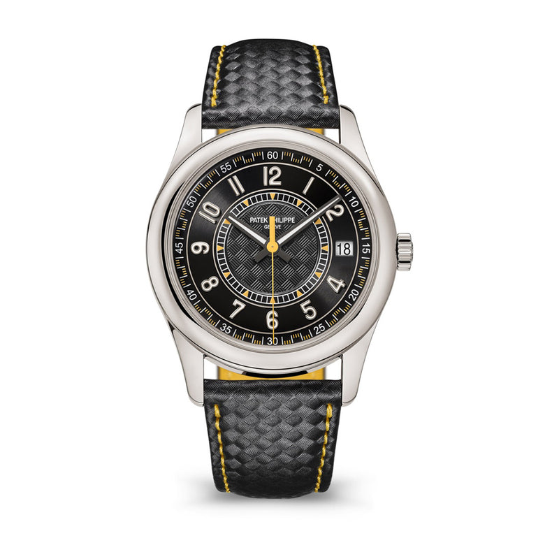 Patek Philippe Calatrava 18ct White Gold 40mm Black Embossed Arabic Dial Watch with a White Gold Bezel on a Black...