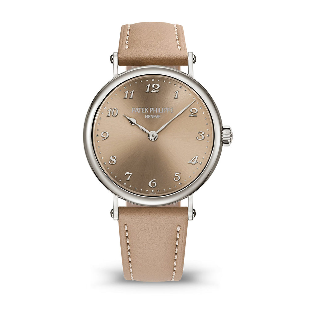 Patek Philippe Calatrava 18ct White Gold 34.6mm Sand Beige Sunburst Arabic Dial Watch with a White Gold Polished Bezel on...