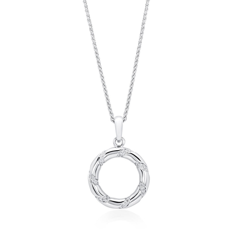 18ct White Gold Pave Set Round Brilliant Cut Diamond Circular Pendant and Chain
