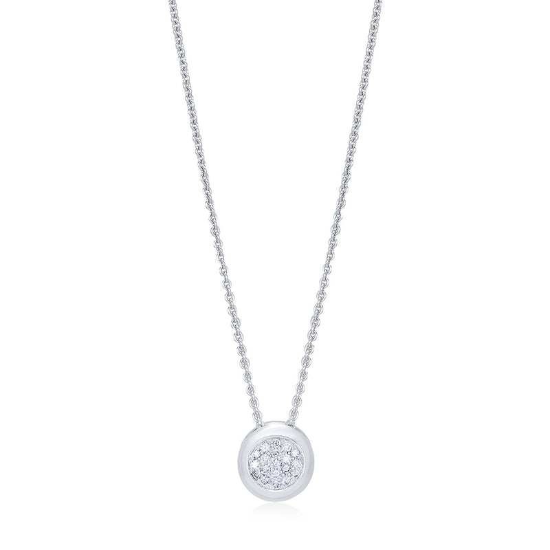 18ct White Gold Pave Set Round Brilliant Cut Diamond Pendant and Chain