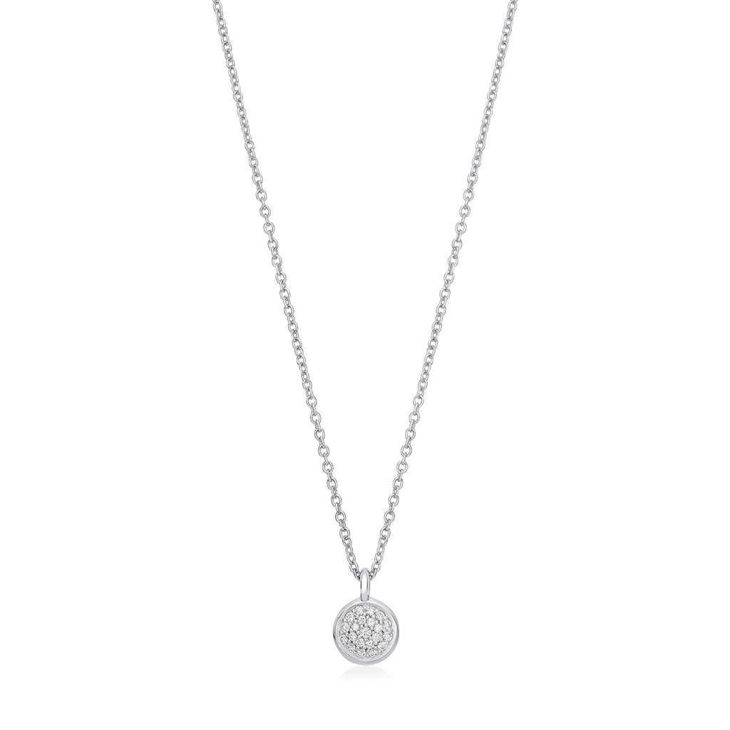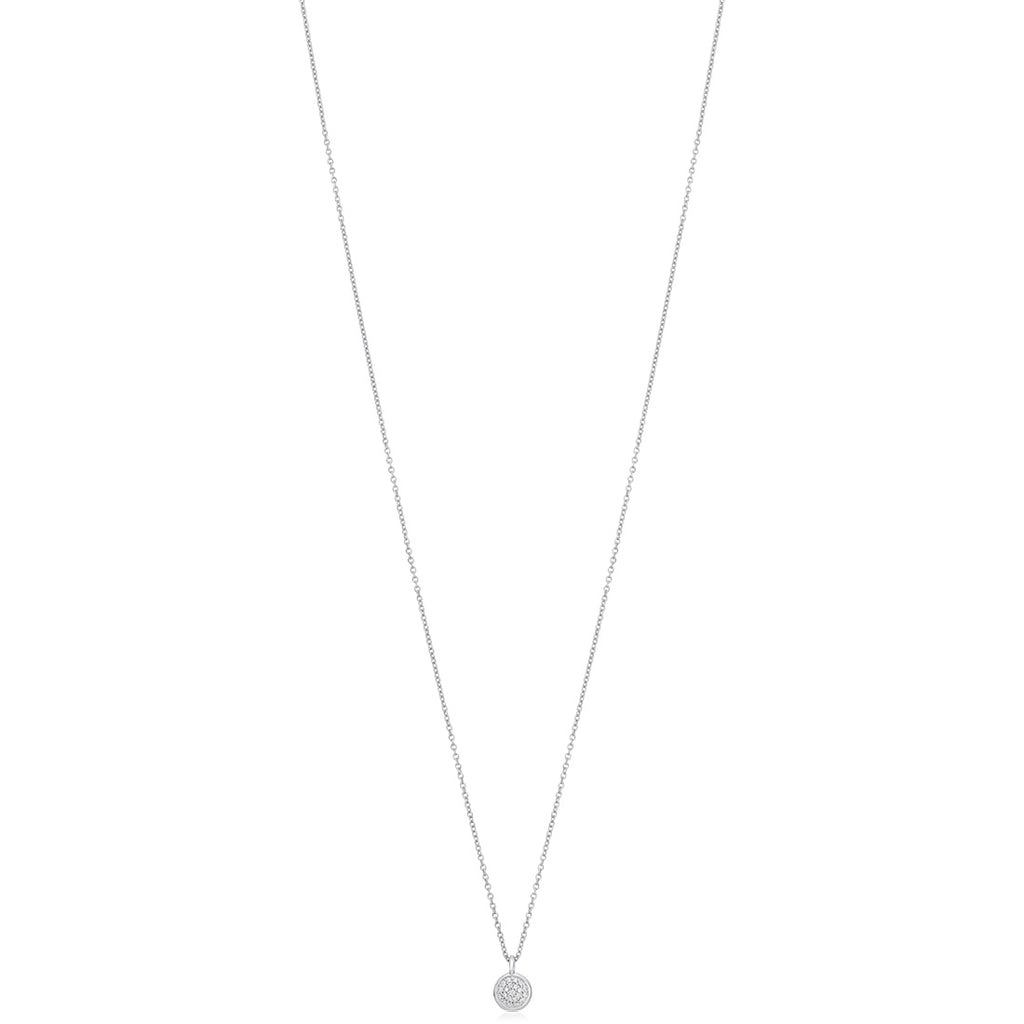 Piccolo 18ct White Gold Pave Set Round Brilliant Cut Diamond Pendant and Chain