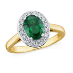 18ct Yellow Gold and Platinum Four Claw Set Oval Cut Emerald and Round Brilliant Cut Diamond Halo Cluster Ring with...