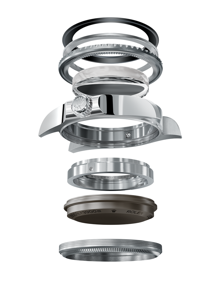 At its launch, this deep-sea divers’ watch inaugurated the Ringlock system – a unique case architecture that allows it to withstand the pressure exerted at this extreme depth. Its 44 mm Oyster case is equipped with the helium escape valve.