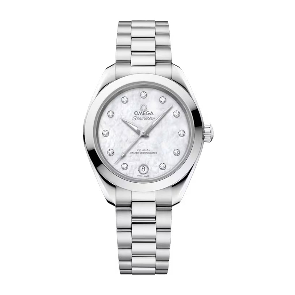Omega Seamaster Aqua Terra 150M Steel 30mm White Mother of Pearl Diamond Dot Dial Watch with a Steel Polished Bezel...