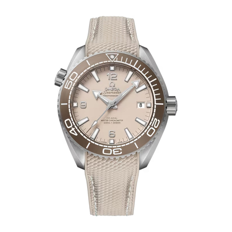 Omega Seamaster Planet Ocean 600M Steel 43.5mm Beige Arabic and Baton Dial Watch with a Bronze Ceramic Unidirectional Bezel on...
