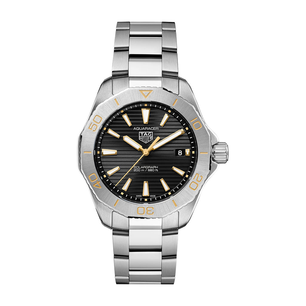 TAG Heuer Aquaracer Professional 200 Solargraph Steel 40mm Black Baton Dial Watch with a Steel Unidirectional Ratcheted Bezel on a...