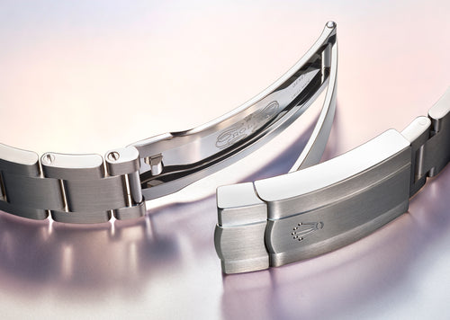On these timepieces, it is made of Oystersteel and furnished with a folding Oysterclasp. It also includes the Easylink comfort extension link, developed by Rolex, which allows the wearer to easily adjust the bracelet length by approximately 5 mm.