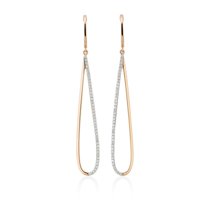 18ct Rose Gold Grain Set Round Brilliant Cut Diamond Drop Earrings with a Hook and Hinge Fitting