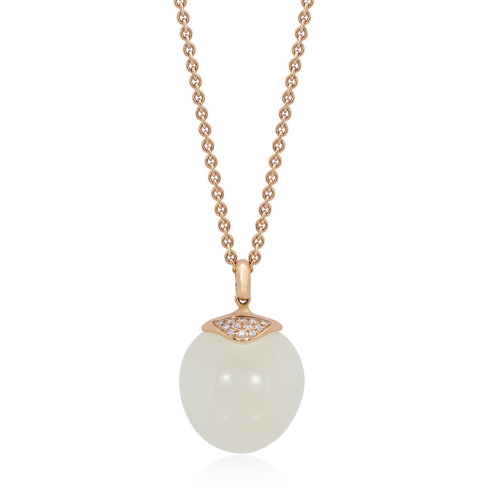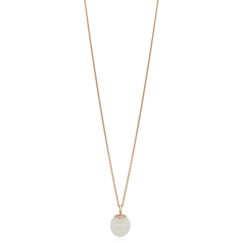 18ct Rose Gold Moonstone and Round Brilliant Cut Diamond Pendant and Chain