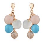 18ct Rose Gold Pink Opal, Turquoise, White Quartz and Diamond Drop Earrings with a Post and Scroll Fitting