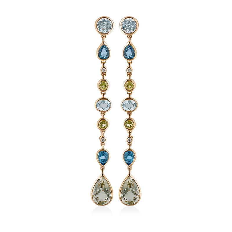 18ct Rose Gold Rub Set Mixed Cut Mixed Gemstone and Round Brilliant Cut Diamond Drop Earrings with a Post and...