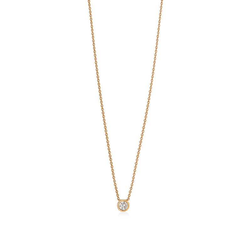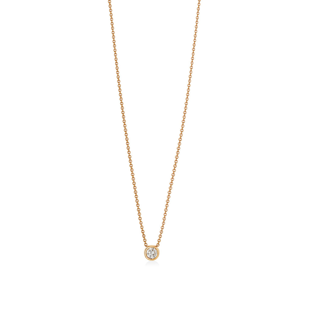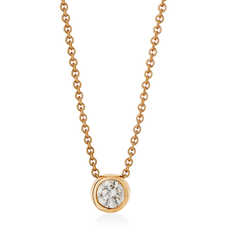 18ct Rose Gold Rub Set Round Brilliant Cut Diamond Pendant and Chain