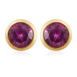 18ct Rose Gold Rub Set Round Cut Rhodolite Garnet Stud Earrings with a Post and Scroll Fitting