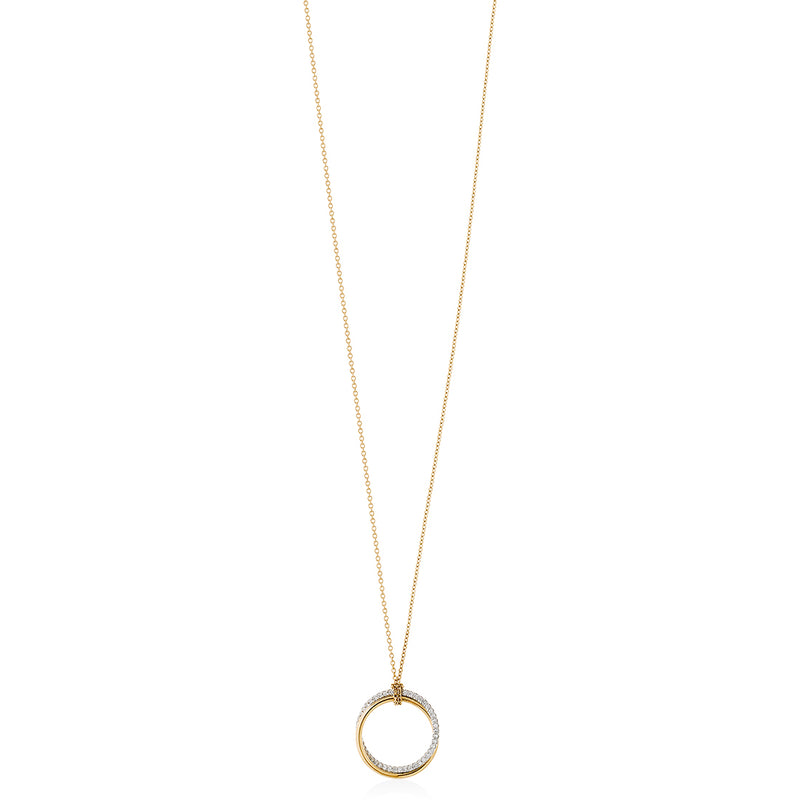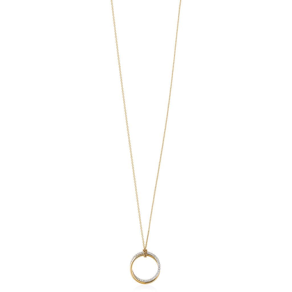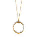 18ct White and Yellow Gold Pave Set Round Brilliant Cut Diamond Two Rings Pendant and Chain