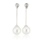 18ct White Gold Akoya Cultured Pearl and Round Brilliant Cut Diamond Drop Earrings with a Post and Scroll Fitting